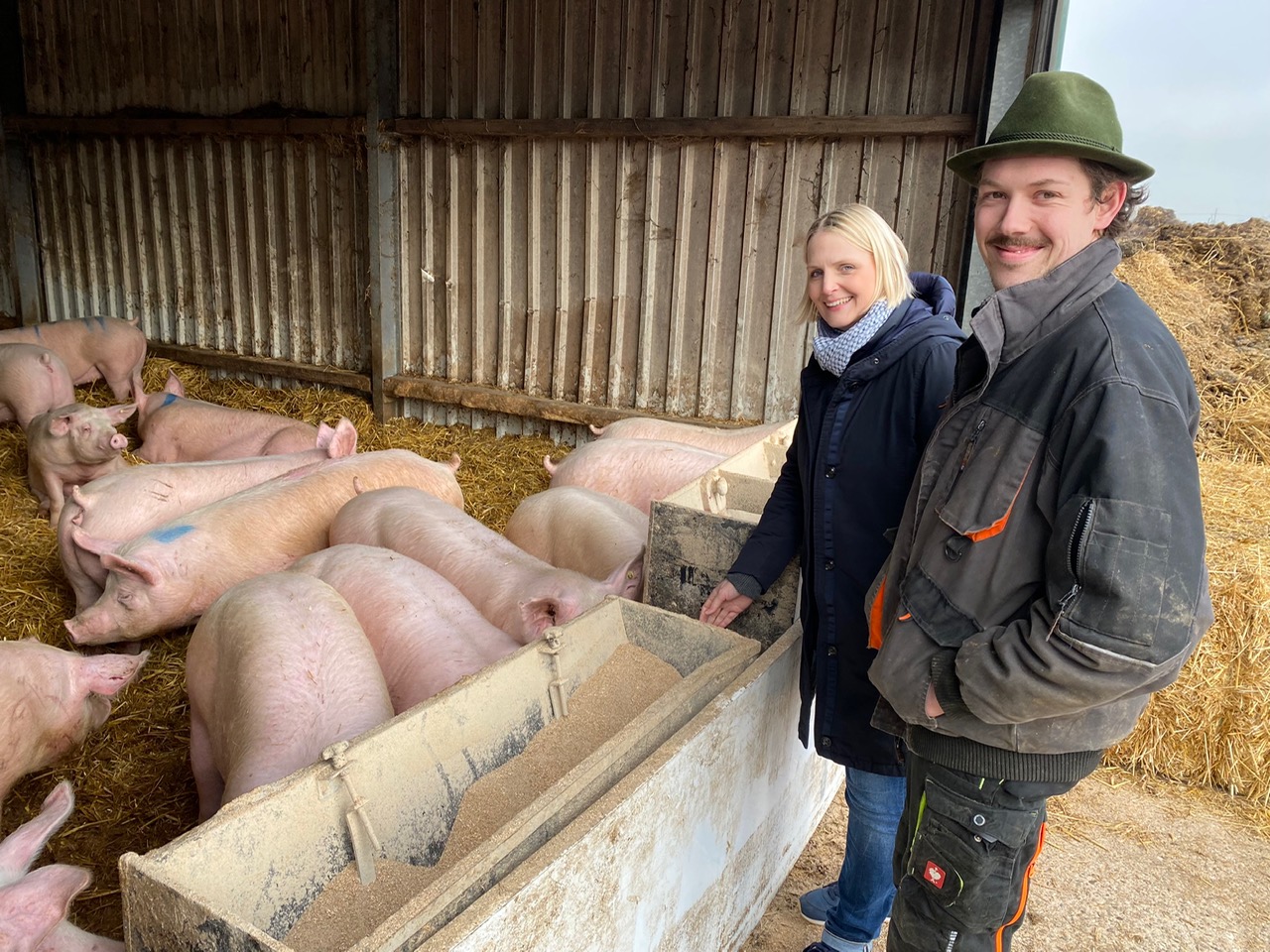 „Wir brauchen mehr Planungssicherheit“, brachte Tim Klötgen seinen zentralen Wunsch auf den Punkt. Charlotte Quik nahm den Ball auf: “Landwirte brauchen mehr Verlässlichkeit.” Sie zeigte sich beeindruckt von der hohen Qualität, der unternehmerischen Kreativität und der hohen Einsatzbereitschaft der jungen Leute, die beide noch keine 30 sind. Beide erfüllen beispielsweise mit der Haltungsstufe 3 die hohen Ansprüche an natürliche Schweinehaltung. In den Ställen dieser sogenannten Strohschweine ist viel mehr Platz als üblich. Und hinzu kommt: „Wir haben festgestellt, dass diese Schweine wesentlich vitaler und gesunder sind“, erläuterte Tim Klötgen – zudem sei das Fleisch muskulöser.